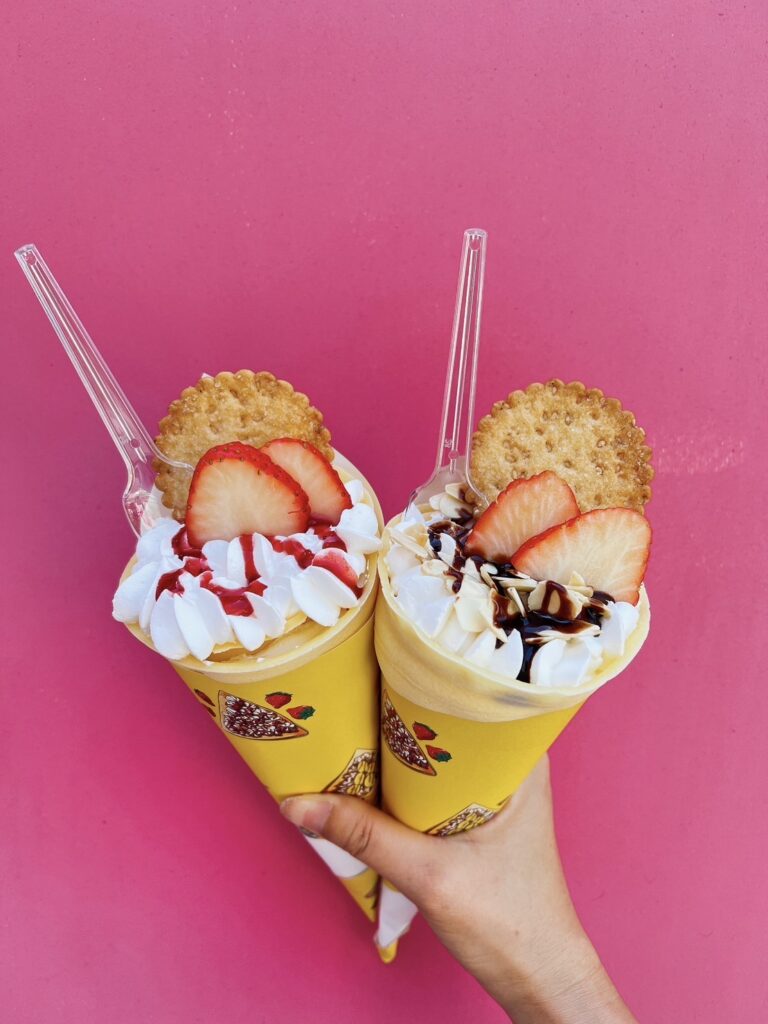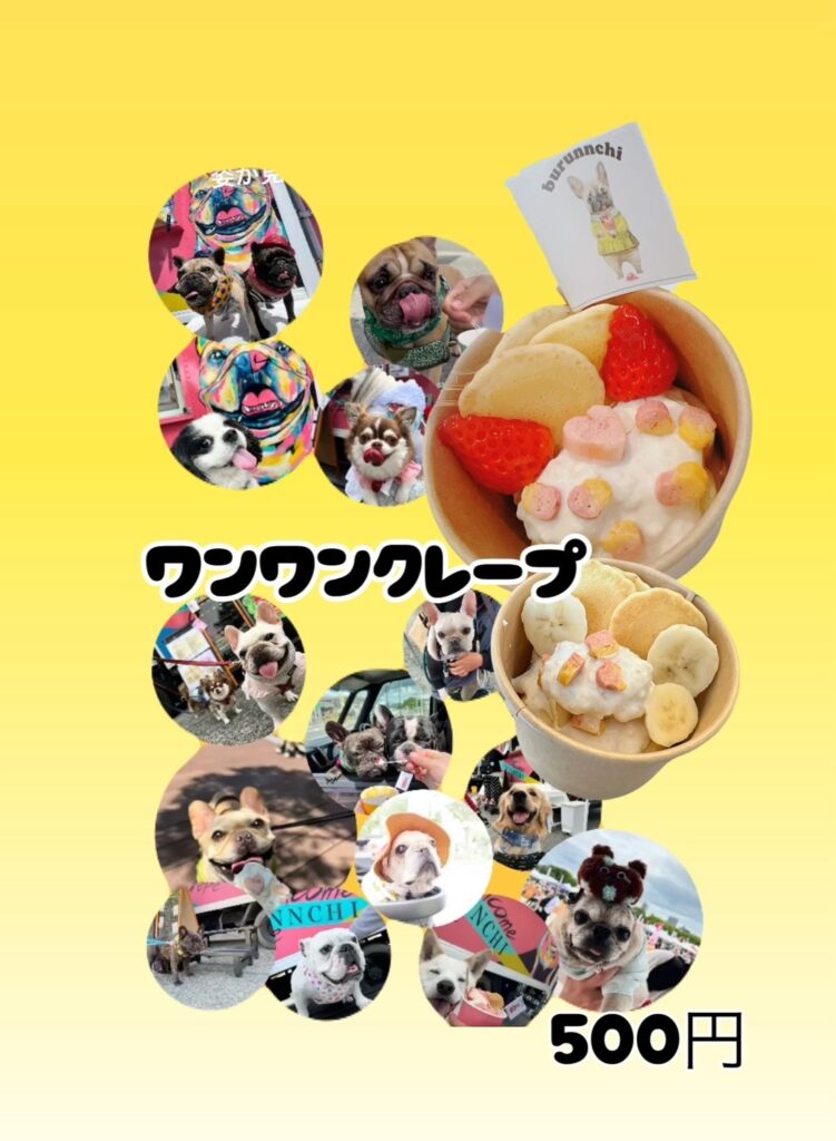 クレープ、ポテト、犬用クレープ、ドリンク、フロート、アイス、マシュマロ、かき氷