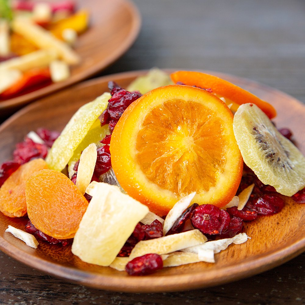 包装済の野菜チップスとドライフルーツの販売