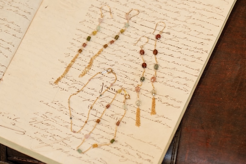 天然石と14kgfのアクセサリー、海外から取り寄せたパーツの一点物アクセサリー、アーティフィシャルフラワーのスワッグなどの雑貨類